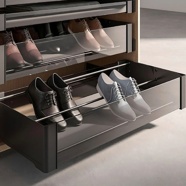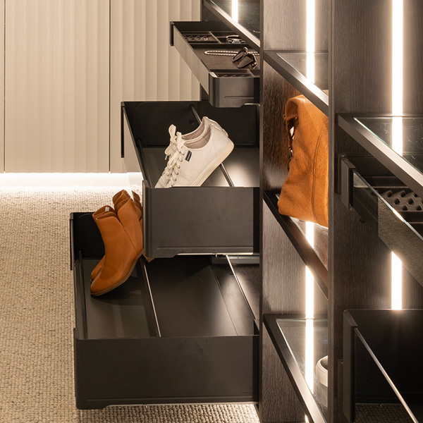 Other highlights include Wardrobe Lifts, Flocked Organiser Trays, and an array of shoe storage solutions, including the coveted Rotating Shoe Rack.