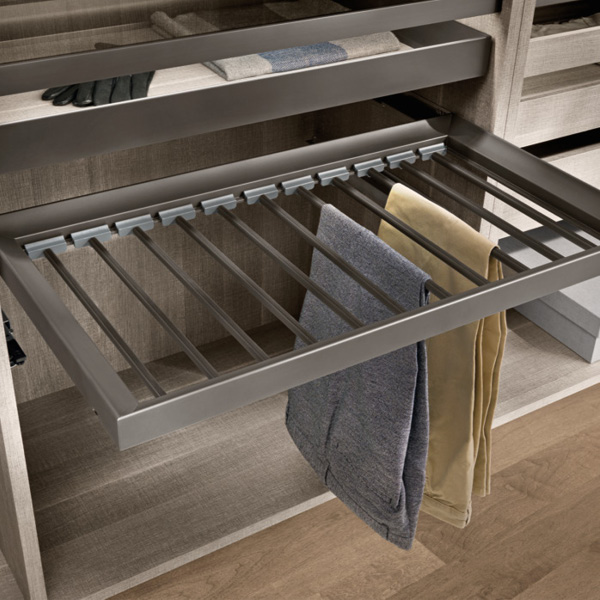 Store, hang, protect, contain and pull out: the Milan Collection offers elegant, highly desirable enhancements to every aspect of wardrobe living. This collection features coat hangers, tray pull outs, trouser pull outs, hampers and more, each piece breathing new life into bedroom design by transforming simple storage and optimising space with sophisticated interior styling.